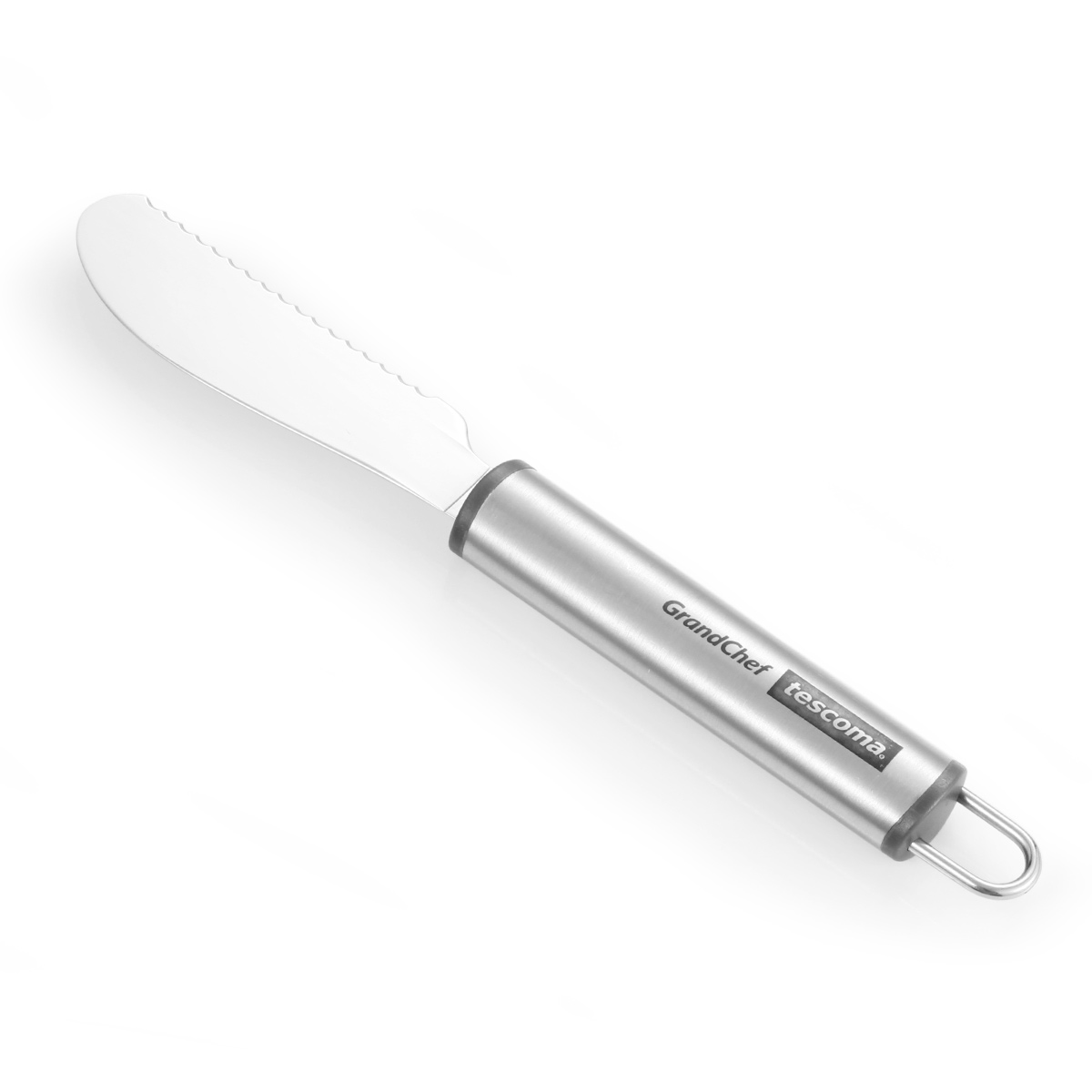Specially shaped blade with serrated cutting edge for easily cutting bread, comfortably gathering and applying butter and for decoratively spreading butter. Made of high-grade stainless steel and resistant plastic. Dishwasher safe. 3-year warranty.