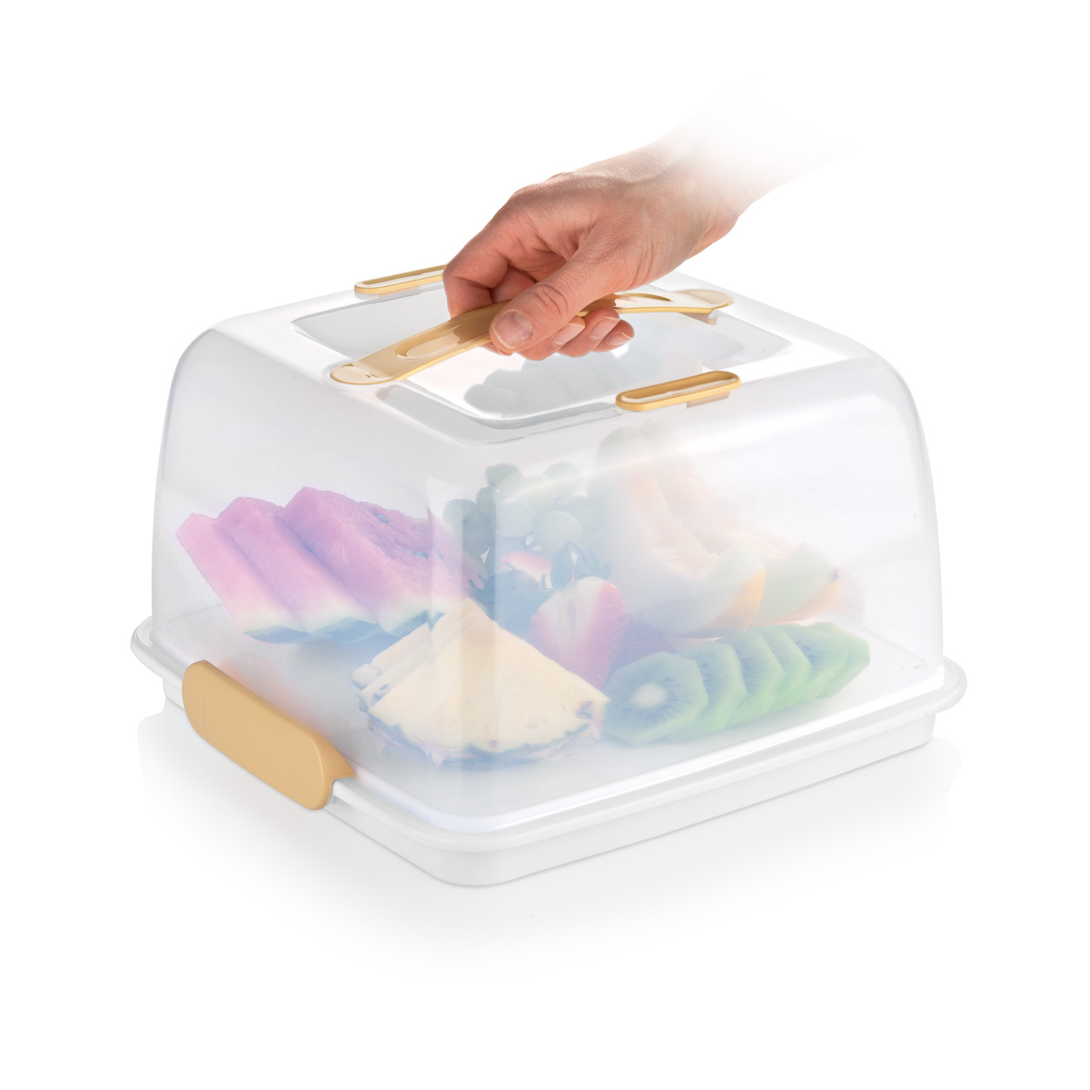 Excellent for carrying and serving tarts, desserts, canapés, toasts, fruits, etc. Food remains cool and fresh longer thanks to the refrigerating insert. Made of excellent resistant plastic the tray and lid are dishwasher safe. Do not wash the refrigerating insert in the dishwasher. 3-year warranty.