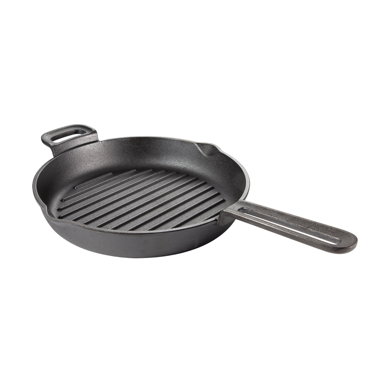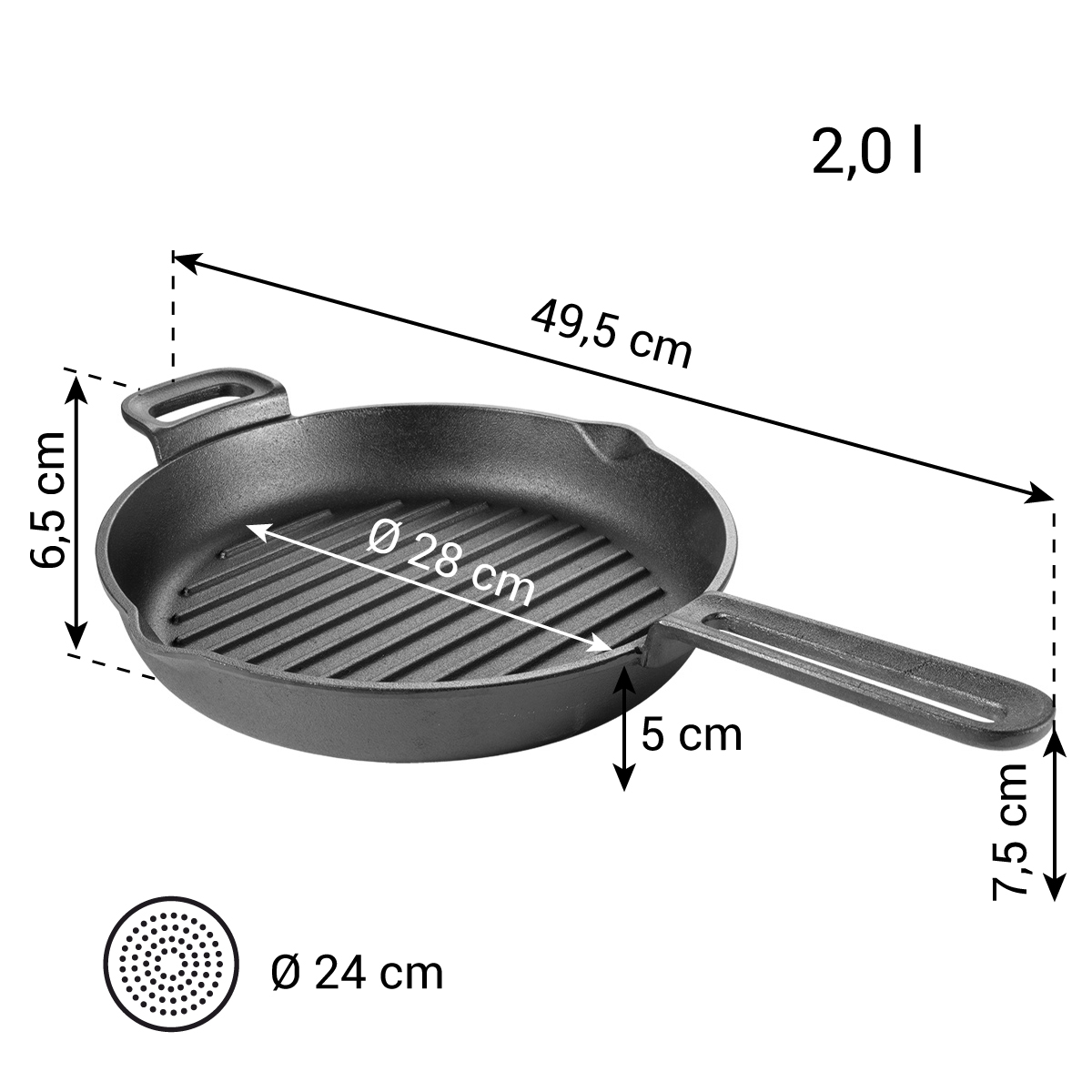 Solid cast-iron frying pan with enhanced thermal accumulation properties excellent for grilling meat, fish and vegetables on gas cookers, on grills and in an oven. When a non-stick protective layer is formed on the surface (seasoning), the top-class properties of the resistant cast-iron cookware improve with every use. Ideal for use on Power grill PARTY TIME (code 707210). 5-year warranty.