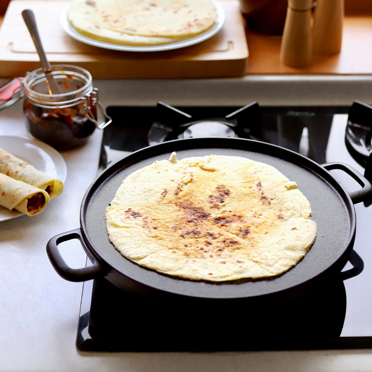 Solid cast-iron frying pan with a smooth/profiled surface and enhanced thermal accumulation properties excellent for grilling meat, fish and vegetables on gas cookers, on grills and in an oven. When a non-stick protective layer is formed on the surface (seasoning), the top-class properties of the resistant cast-iron cookware improve with every use. Ideal for use on Power grill PARTY TIME (code 707210). 5-year warranty.