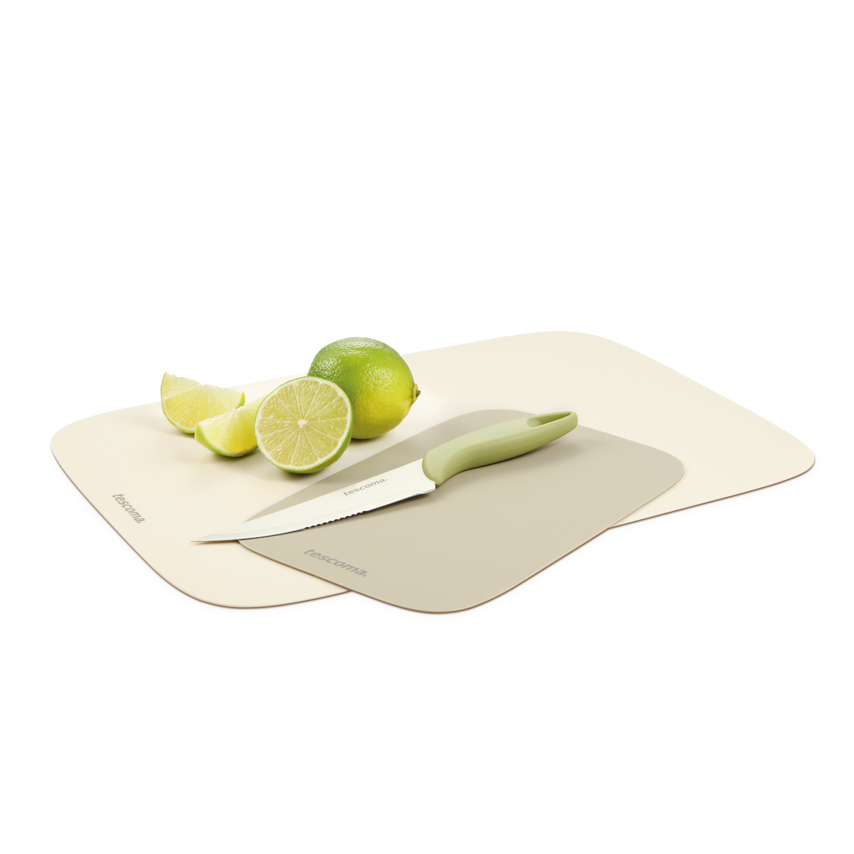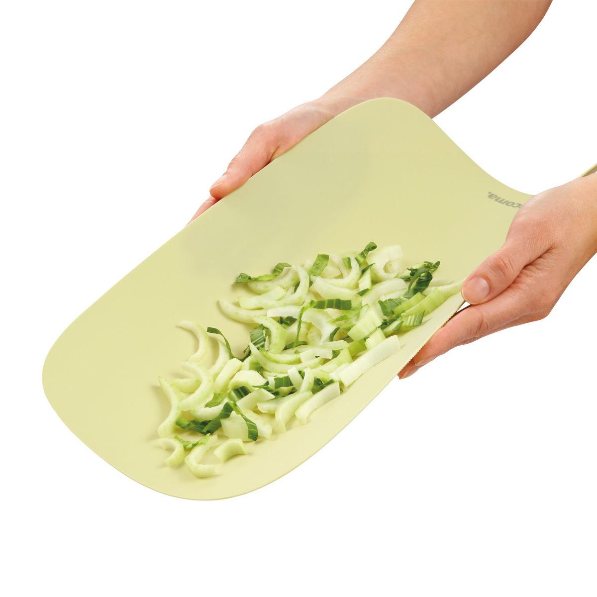 Modern chopping boars excellent for cutting all kinds of food. Made of flexible plastic for easily carrying cut food with an efficient anti-skid layer. Dishwasher safe, space-saving. 3-year warranty. Notice: Cut food exclusively on the smooth side without the anti-skid layer.