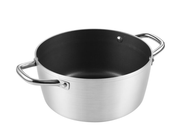 Sturdy aluminium cookware with first-class non-stick coating suitable for stoves and ovens.