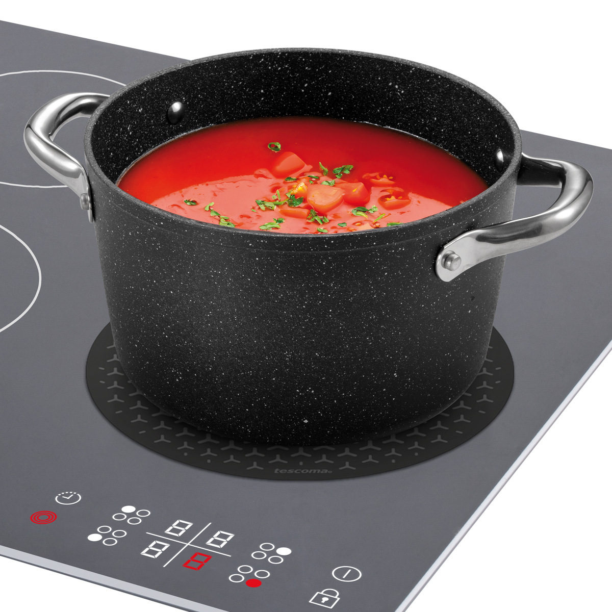 Protects induction cooktops from scratches, grease, and cooking residues. The mat is non-slip, ensuring a stable and secure base for cookware. Made of heat-resistant silicone (up to 230 °C) and reinforced with glass fibre. Dishwasher safe. 3-year warranty. Application: Place the mat at the centre of the induction cooktop and cook as usual.
