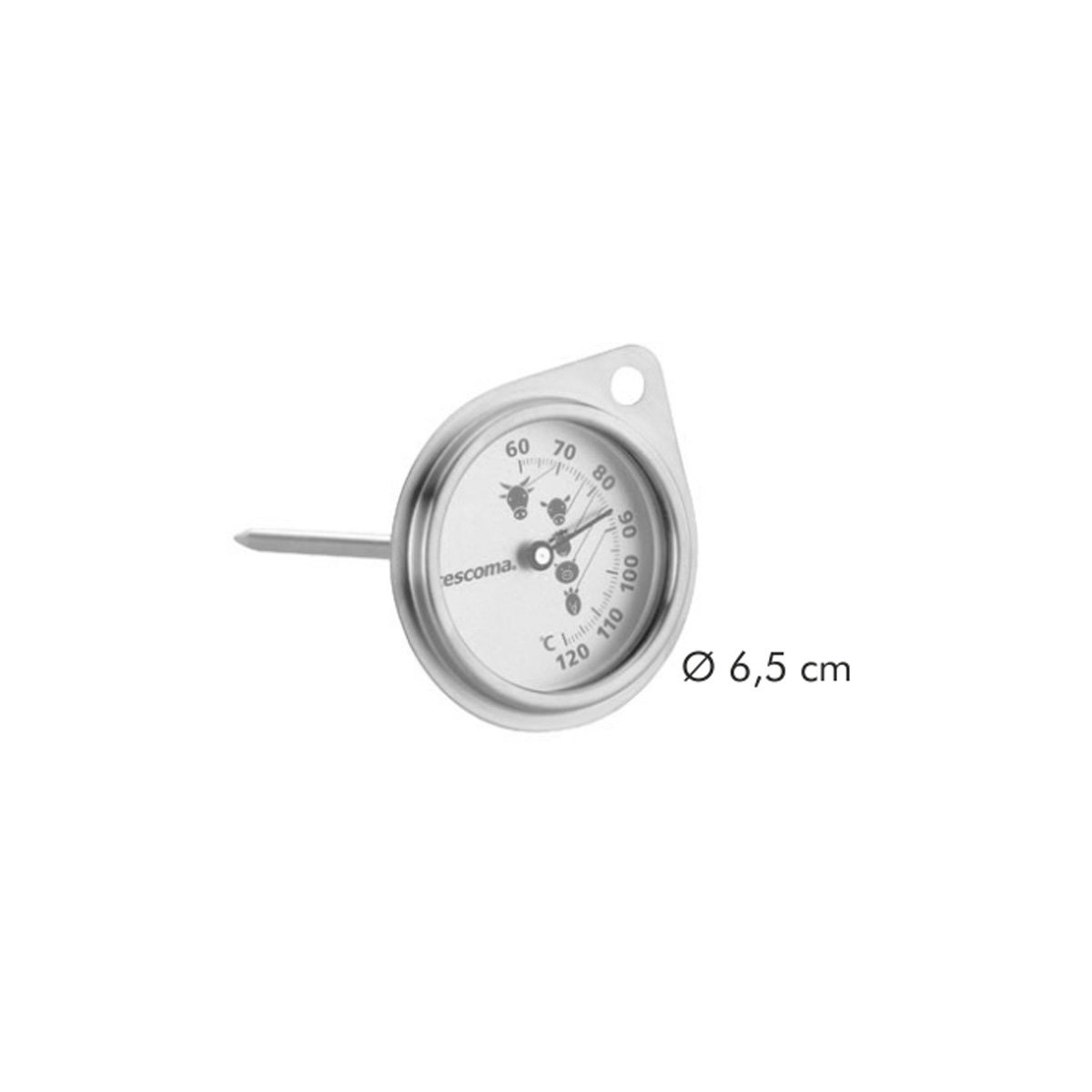 Measures temperature inside meat in the oven during baking. Excellent for monitoring the temperature necessary for killing harmful bacteria. Made of high-grade stainless steel and resistant glass. Suitable for gas, electric, hot-air oven. Wash under running water. Do not wash in dishwasher. 3-year warranty.