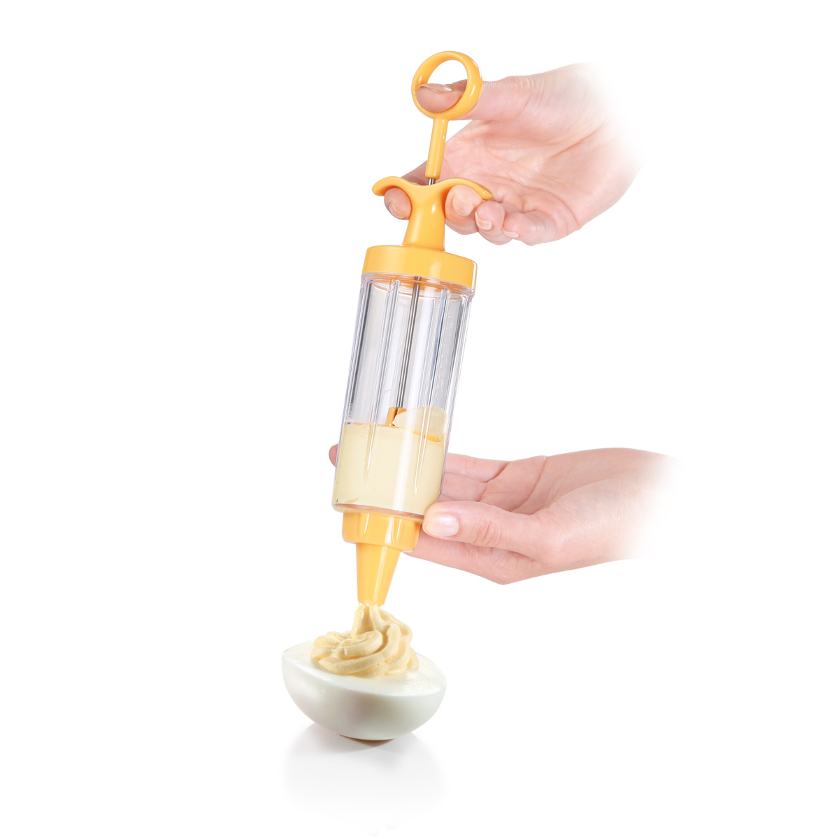 Excellent for decorating cakes, desserts, sandwiches, canapés, etc. The 8 decorating nozzles are stored in a practical container. The container with the nozzles can be stored inside the decorator. Made of resistant plastic and stainless steel, dishwasher safe. 3-year warranty.