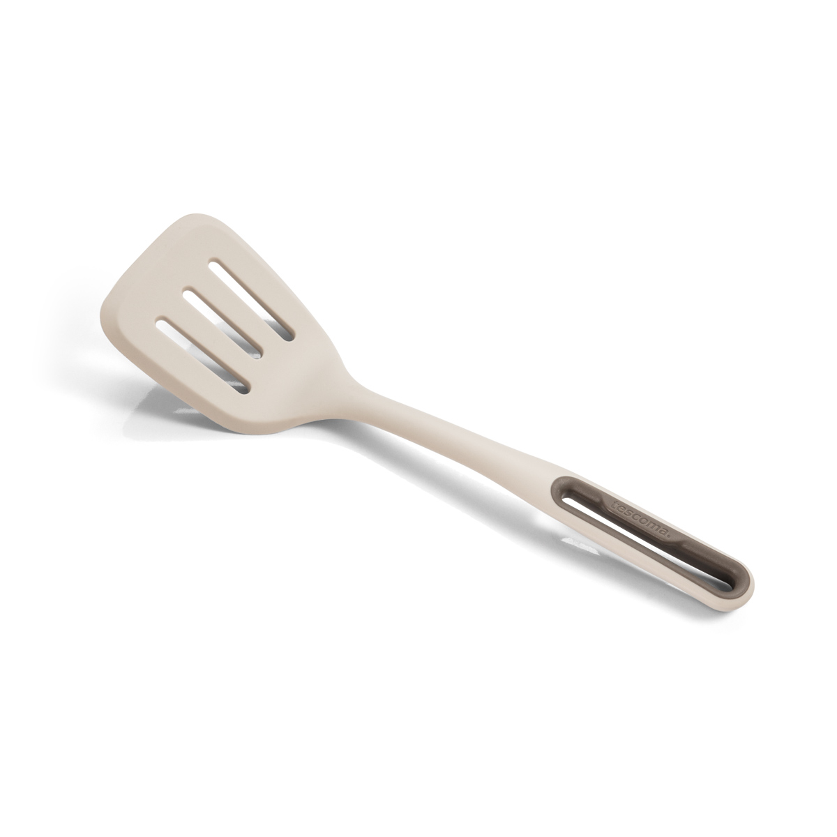 Modern kitchen utensil, perfect for all types of cookware. Ideal for cookware with non-stick coating as it does not damage the surface. Made of heat-resistant silicone, it withstands temperatures up to 220 °C and does not absorb colours from food. Dishwasher safe. 3-year warranty.
