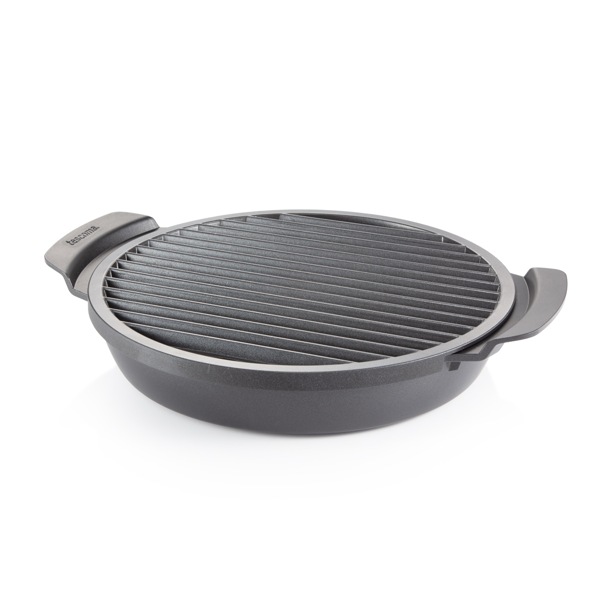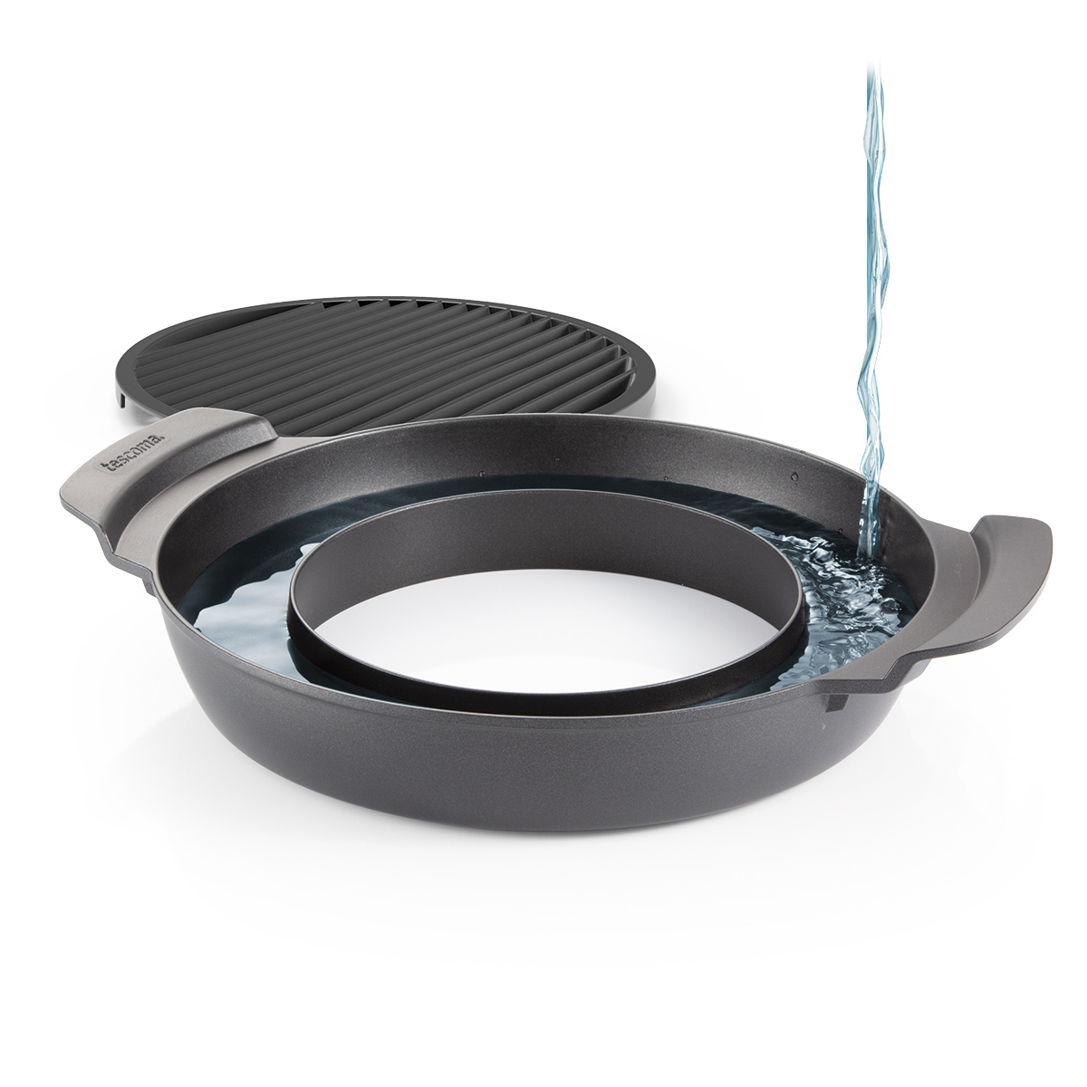Solid two-part frying pan for healthier grilling without smoke. Intended for use on gas cookers and in Power grill PARTY TIME. The spacious grilling area with openings directs the drippings to the reservoir with water, thus preventing charring and the generation of smoke. The frying pan is made of high-quality metal with first-class non-stick coating it is easy to clean and dishwasher safe. 3-year warranty.