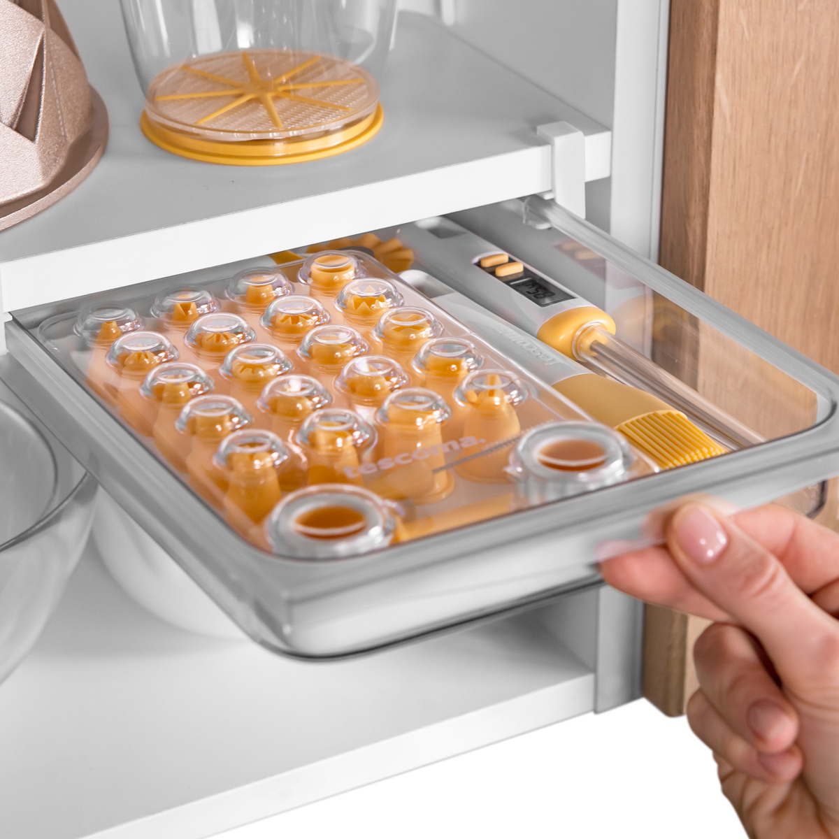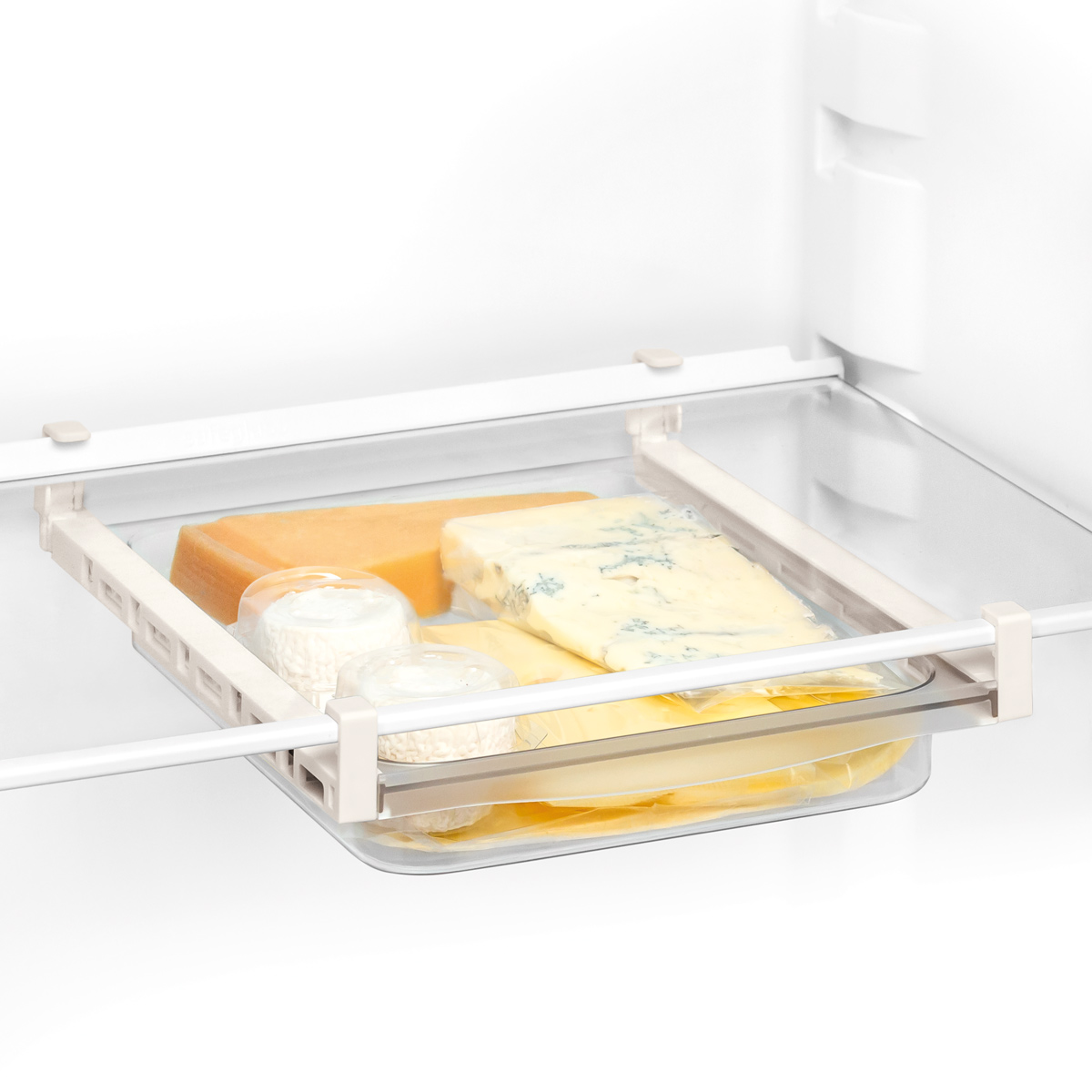 Excellent for organised storage and for comfortably collecting food from refrigerators and kitchen cabinets, making optimal use of the space available. Universal, suitable for installation using easily adjustable holders to all common types of removable shelves in refrigerators and kitchen cabinets. Made of resistant plastic and stainless steel. 3-year warranty.